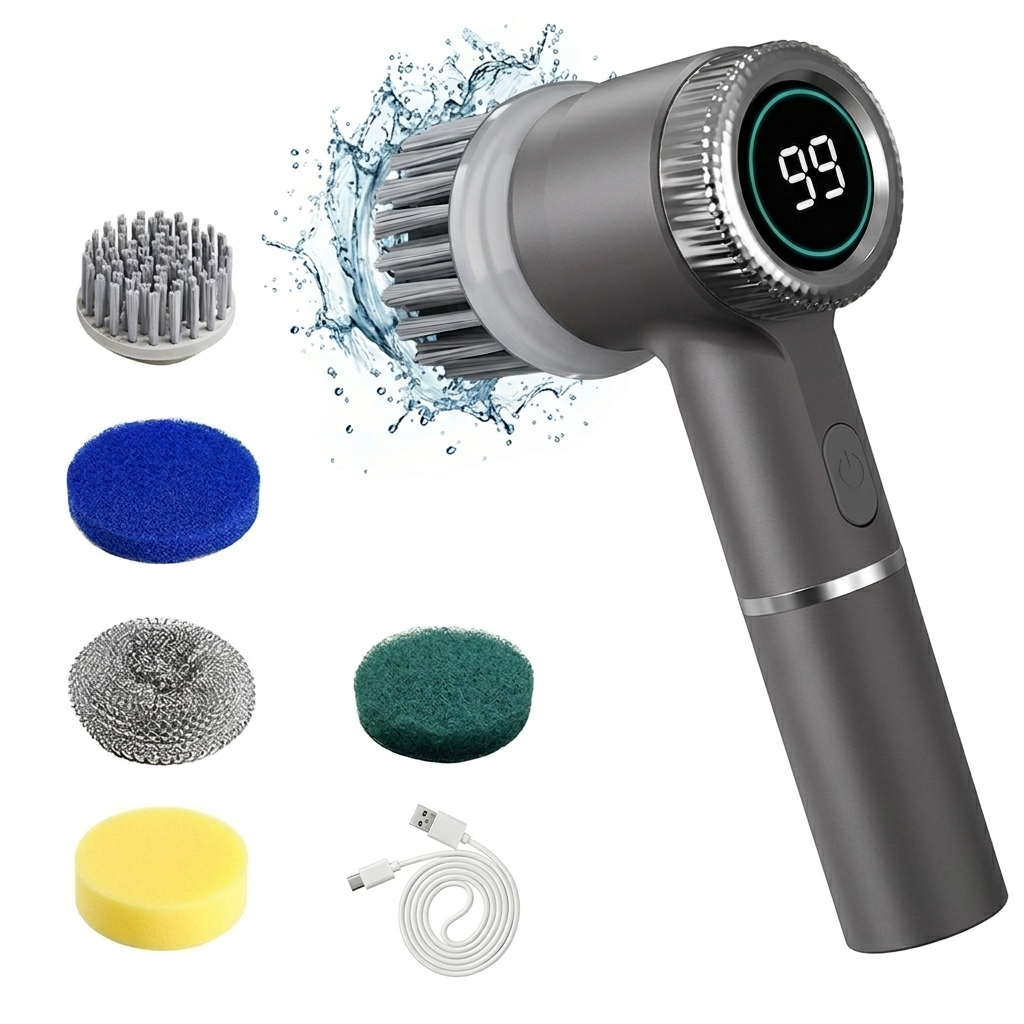 - 🧽 4 cabezales de cepillo multifunción diseñados para limpiar esquinas, suelos, bañeras, estufas, fregaderos y vidrio con máxima precisión.